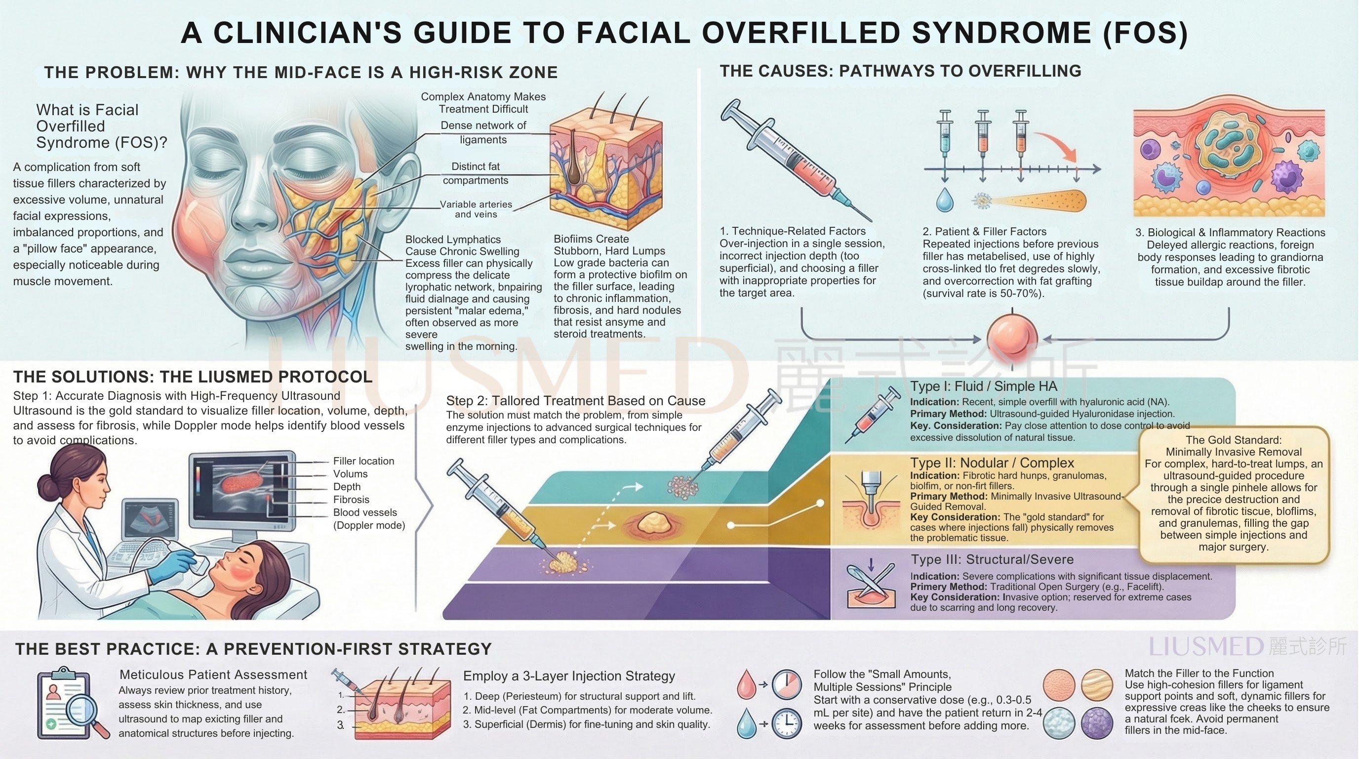 Based on years of clinical experience, Liusmed Clinic has compiled a comprehensive FOS (Facial Overfilled Syndrome) diagnosis and treatment guideline. Click to enlarge.